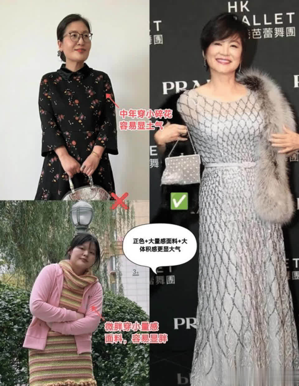 尤其是大龄女性的贵气冬装还可靠“正色、重工面料和大体积感”。且这类量感偏大的服装比小量感服装更适合发福人士。